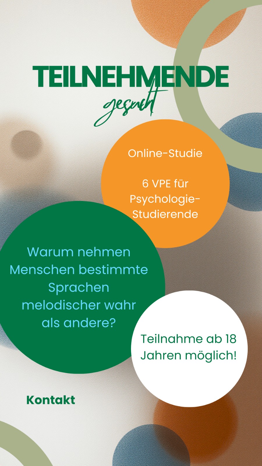 Für die Teilnahme sollte man mindestens 18 Jahre alt sein. Psychologiestudierende können für ihre Teilnahme Versuchsscheine erhalten.